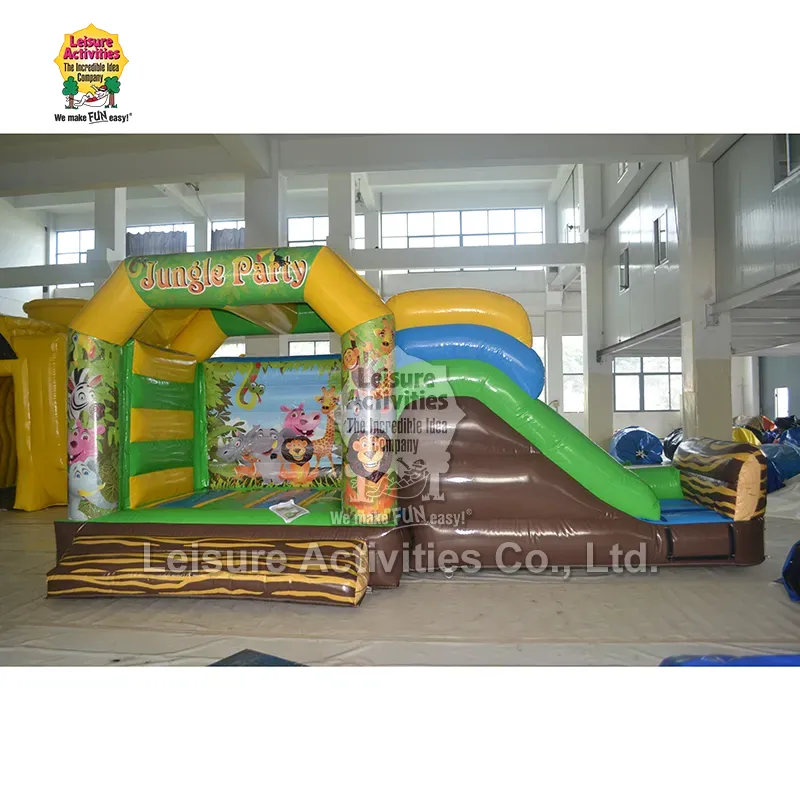 Leisure Activities® Inflatable er en OEM-producent af små oppustelige Multiplay hoppeborge i høj kvalitet Junglefest med Rutsjebane. Vi arbejder tæt sammen med kunder for at tilpasse produkter til deres nøjagtige specifikationer. Vi respekterer strengt intellektuelle ejendomsrettigheder og vil ikke replikere proprietære design uden tilladelse.